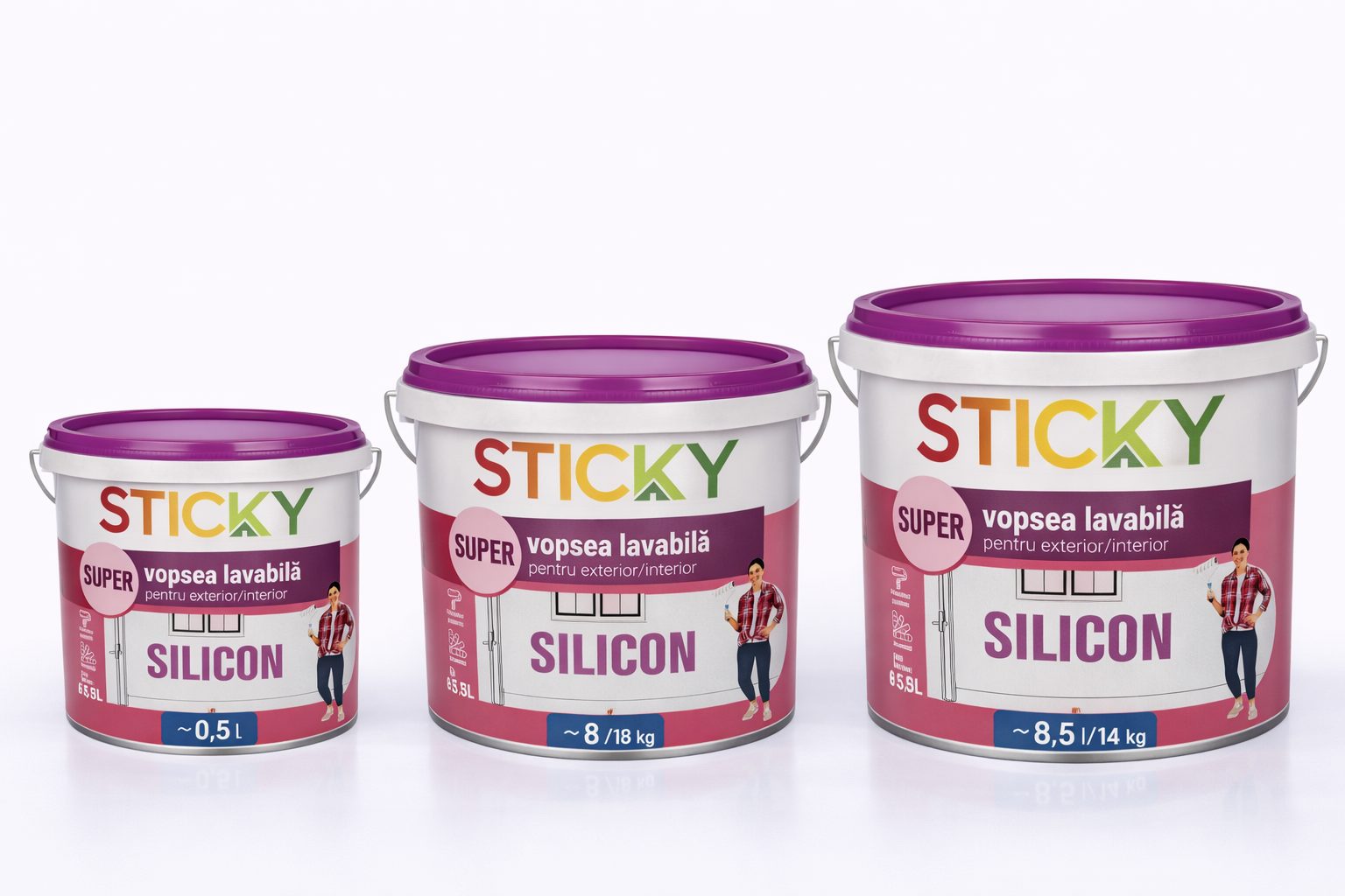 Vopsea lavabilă siliconică – vopsea decorativă de înaltă calitate pentru pereți și fațade. Formează un strat rezistent la murdărie, umiditate și intemperii, având o bună permeabilitate la vapori și o durabilitate ridicată. Potrivită pentru aplicare pe tencuială, beton, gips-carton și alte suprafețe minerale.